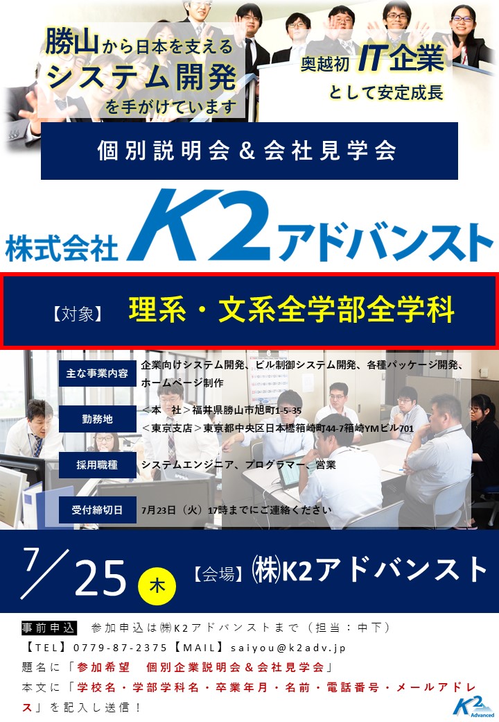 場所:株式会社K2アドバンスト【福井県勝山市旭町1-5-35】