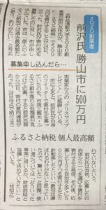 ZOZO創業者の前沢氏が勝山市へ『ふるさと納税』で500万円寄付するという記事がありました!