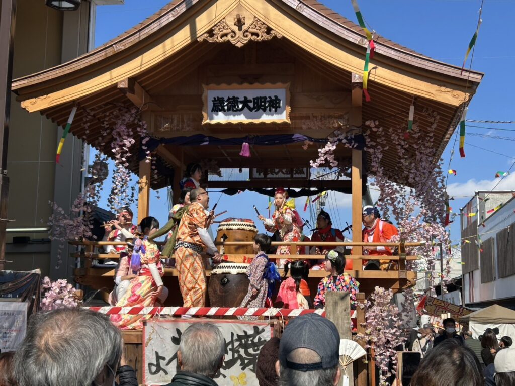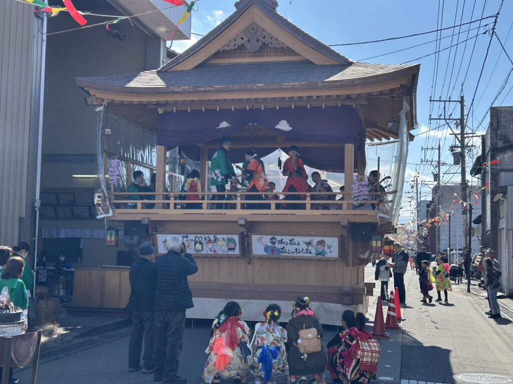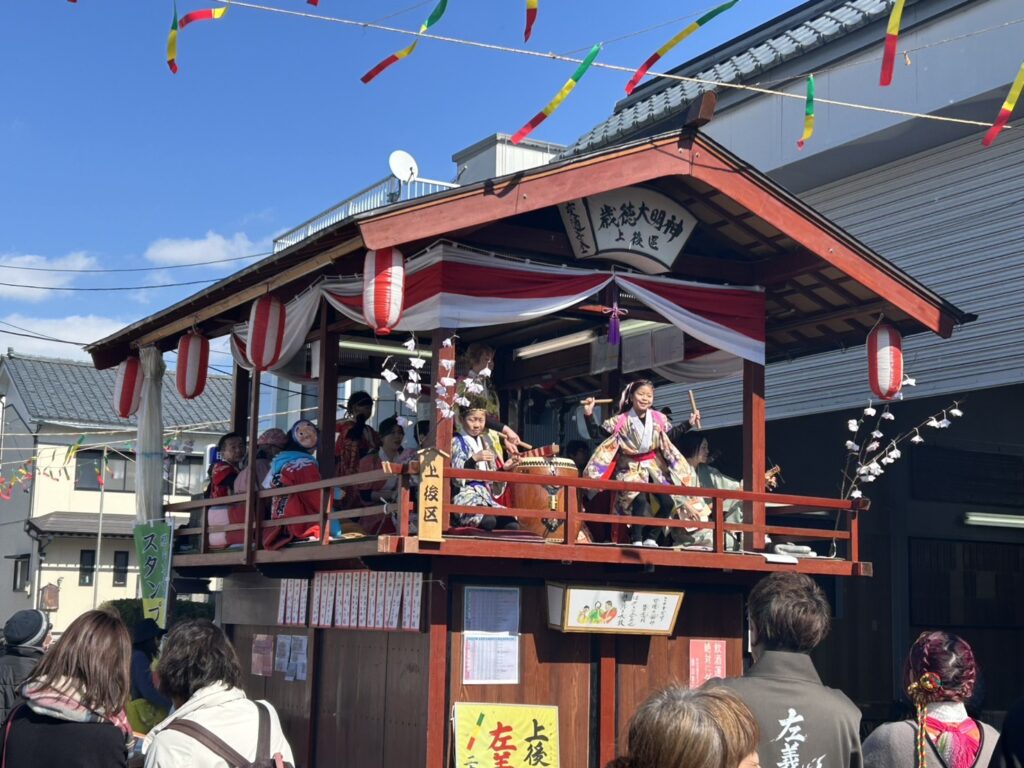 まちなかには櫓(やぐら)が設けられ、色鮮やかな短冊や飾りが揺れる中、三味線や笛、太鼓のお囃子が響き渡ります。軽快なリズムに合わせて踊る姿はとても華やかで、寒さを忘れるほどの熱気に包まれていました。観光で訪れた方も多く、写真を撮ったり、足を止めて見入ったりと、各所でにぎわいが見られました。
