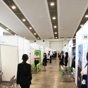 就職活動している学生さんも多く訪れ、各ブースで学生さんと企業の担当者との真剣勝負が繰り広げられていました。