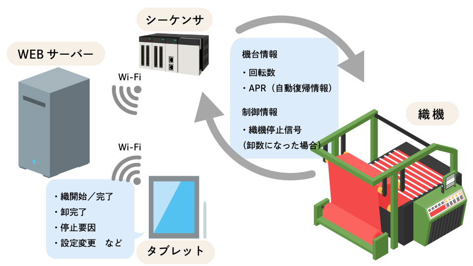 織布生産工場での自動実績収集システムによる、生産管理を実現